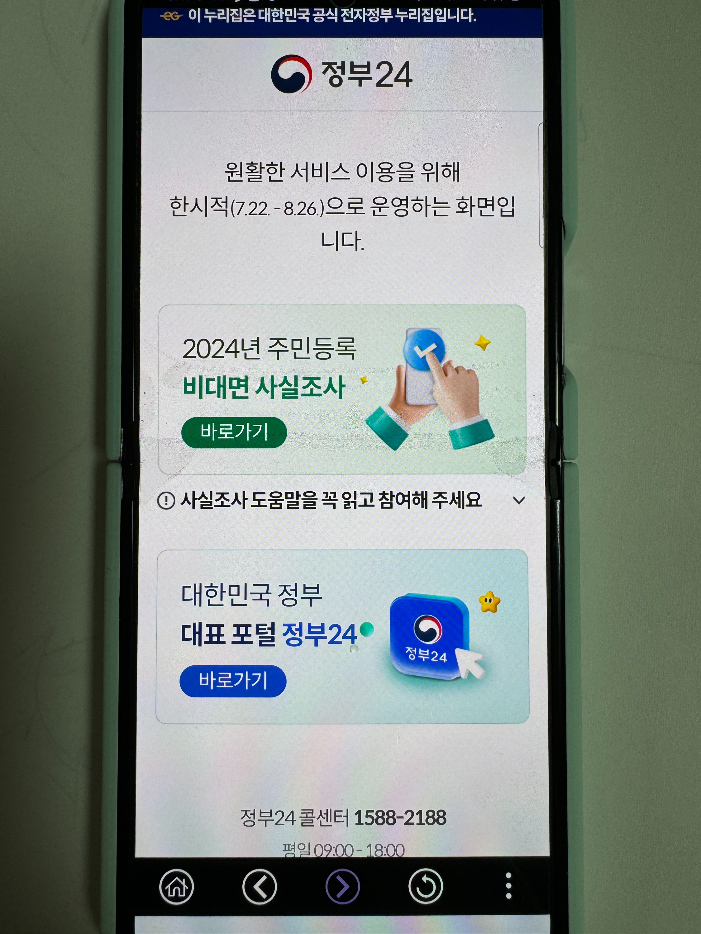 비대면으로 주민등록 비대면 사실조사를 신청하려면 우선 Android 및 iOS에서 '정부24' 어플 다운로드한 후 실행해야 하며, 세대주와 세대원 모두 참여 가능합니다.